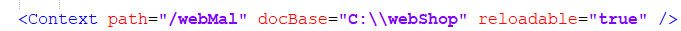C:\\webShop에 있는 웹 문서가 webMal이란 이름으로 톰캣 컨테이너에 컨텍스트로 등록된다.